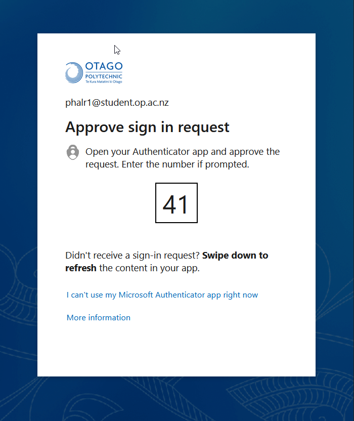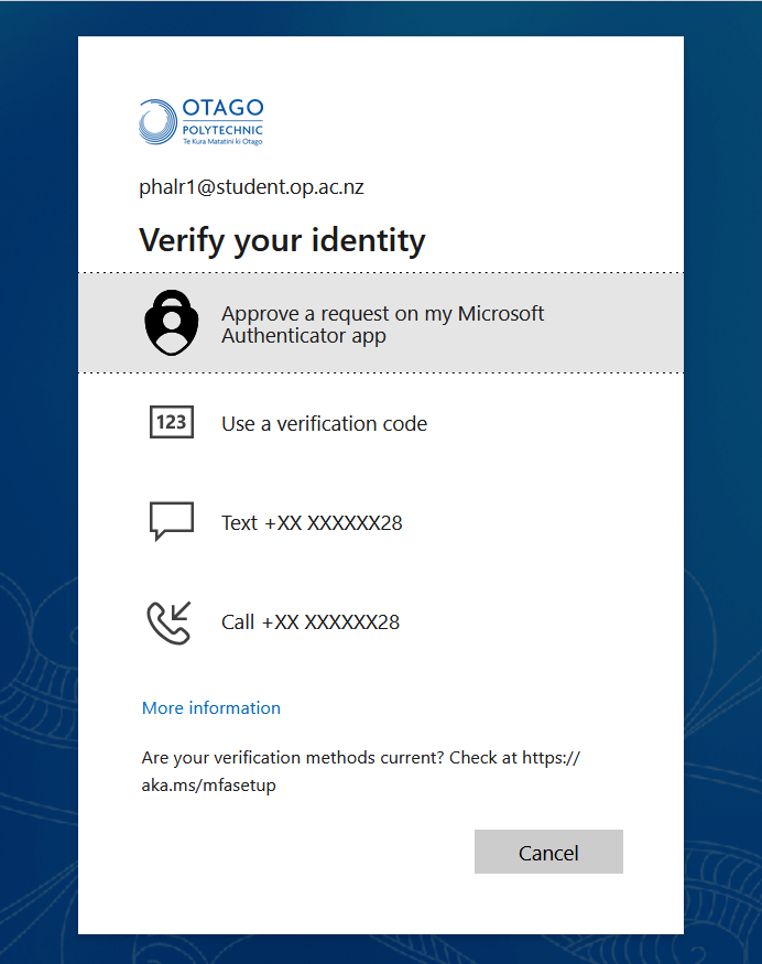 Here are some examples of what you'll see when you're prompted for multifactor authentication. Just follow the prompts for your chosen method.