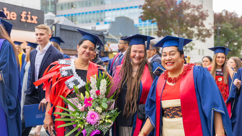 A large number of graduates took up the opportunity to march through central Dunedin on Friday morning with whanau and friends as part of a celebratory street parade.