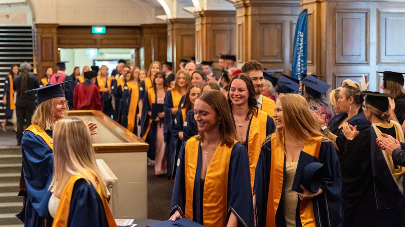 The first ceremony at the Dunedin Town Hall featured graduates from the College of Community Development and Personal Wellbeing, the College of Health, and the Central Otago Campus.
