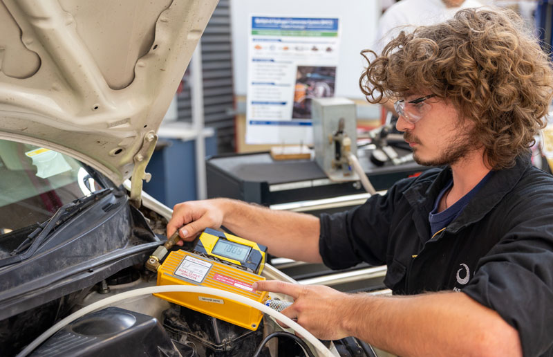 Automotive Engineering student Cam Shafton says they’re continuing to fine-tune the air-fuel mixture, ignition timing, and emissions performance.