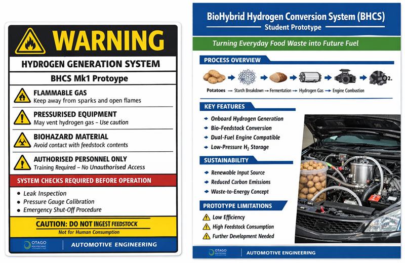 A partnership between Automotive Engineering and Culinary Arts students has produced a small-scale BioHybrid Hydrogen Conversion System (BHCS), using fermented waste vegetables.