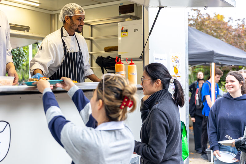 Senior lecturer Tim Lynch says the students served around 450 portions of food in the first market (‘sold out’ in 30 minutes), increasing to around 750 portions for the second event, with dishes including deep-fried sushi rolls, open sandwiches, and Mexican tacos.