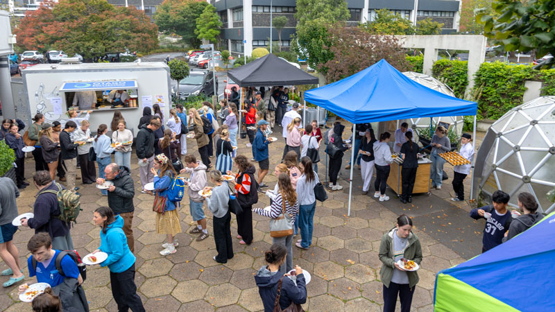 The free food pop-ups were held in the Manaaki Courtyard over two consecutive Thursday lunchtimes, with guests encouraged to give feedback to help the culinary students refine their dishes and delivery between the two events.