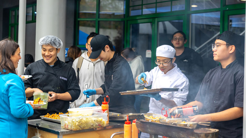The students recently completed a zero waste systems paper and were challenged with preparing and serving hundreds of portions of delicious plant-based street food for ākonga and kaimahi to try.